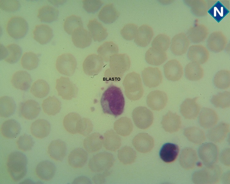 Com base no resultado do hemograma e nas fotos da extensão sanguínea indique a hipótese diagnóstica laboratorial e faça uma breve discussão sobre sua escolha.